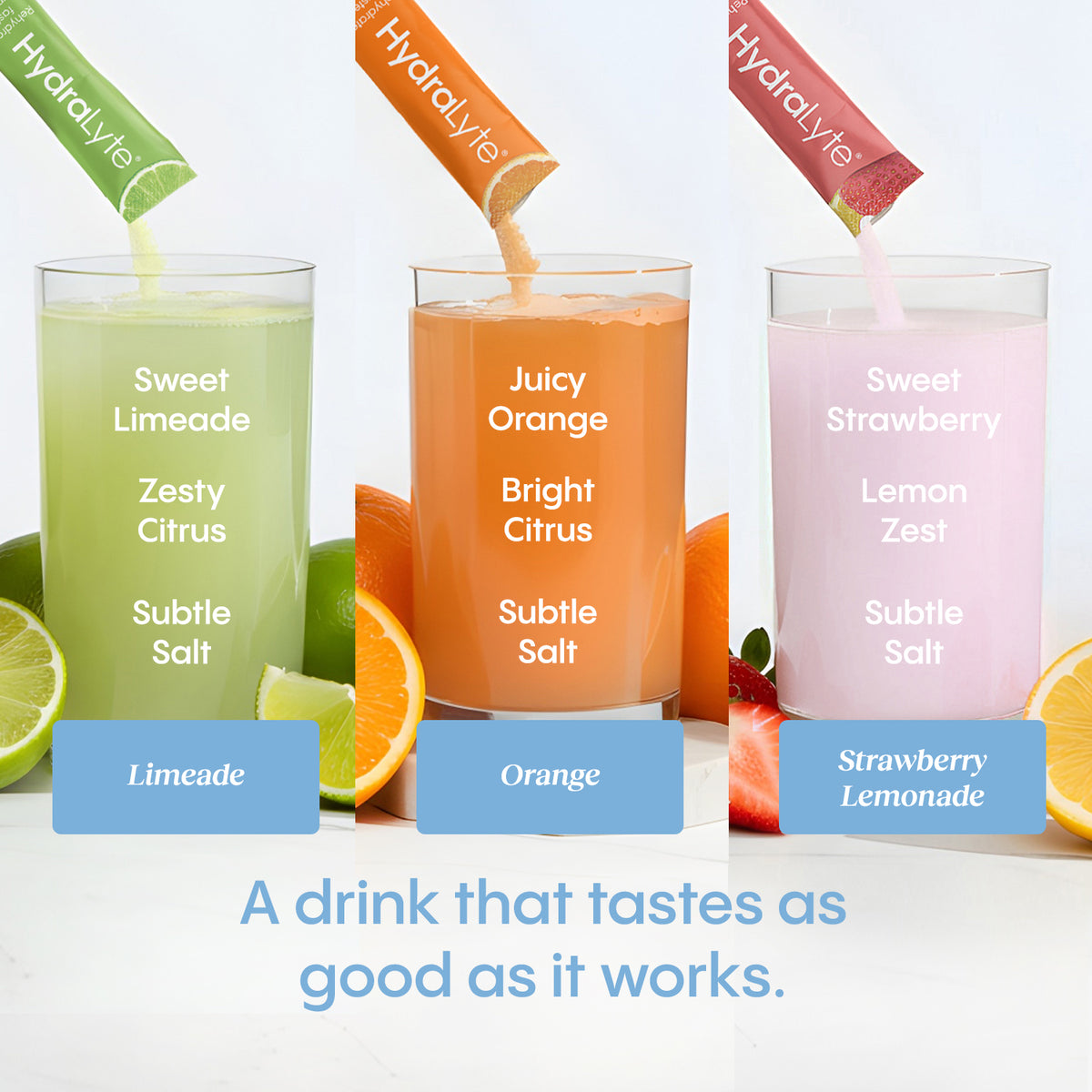 Our signature LyteRH® formula delivers a precise blend of electrolytes and just enough sugar to accelerate water absorption - not just replenish electrolytes like other blends.