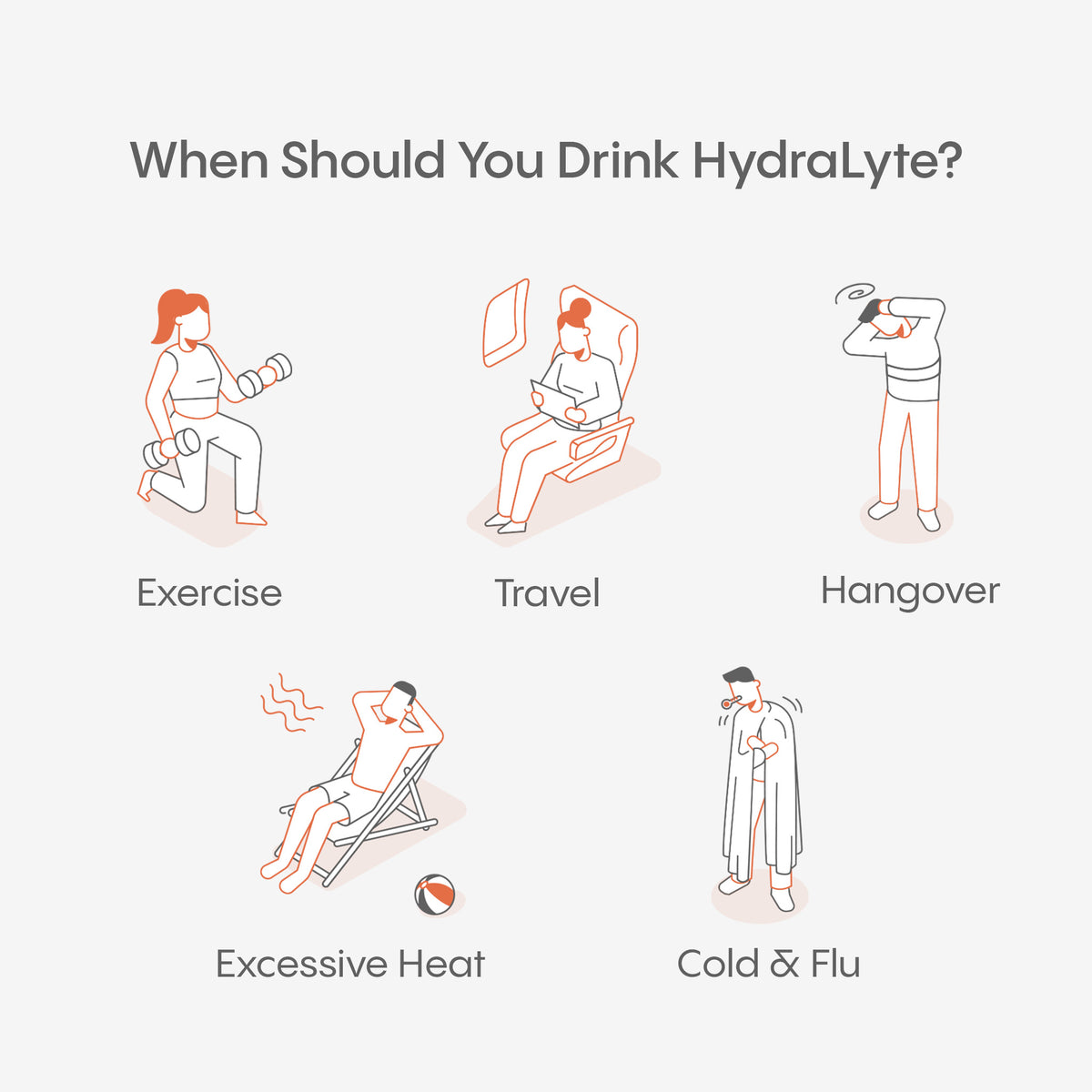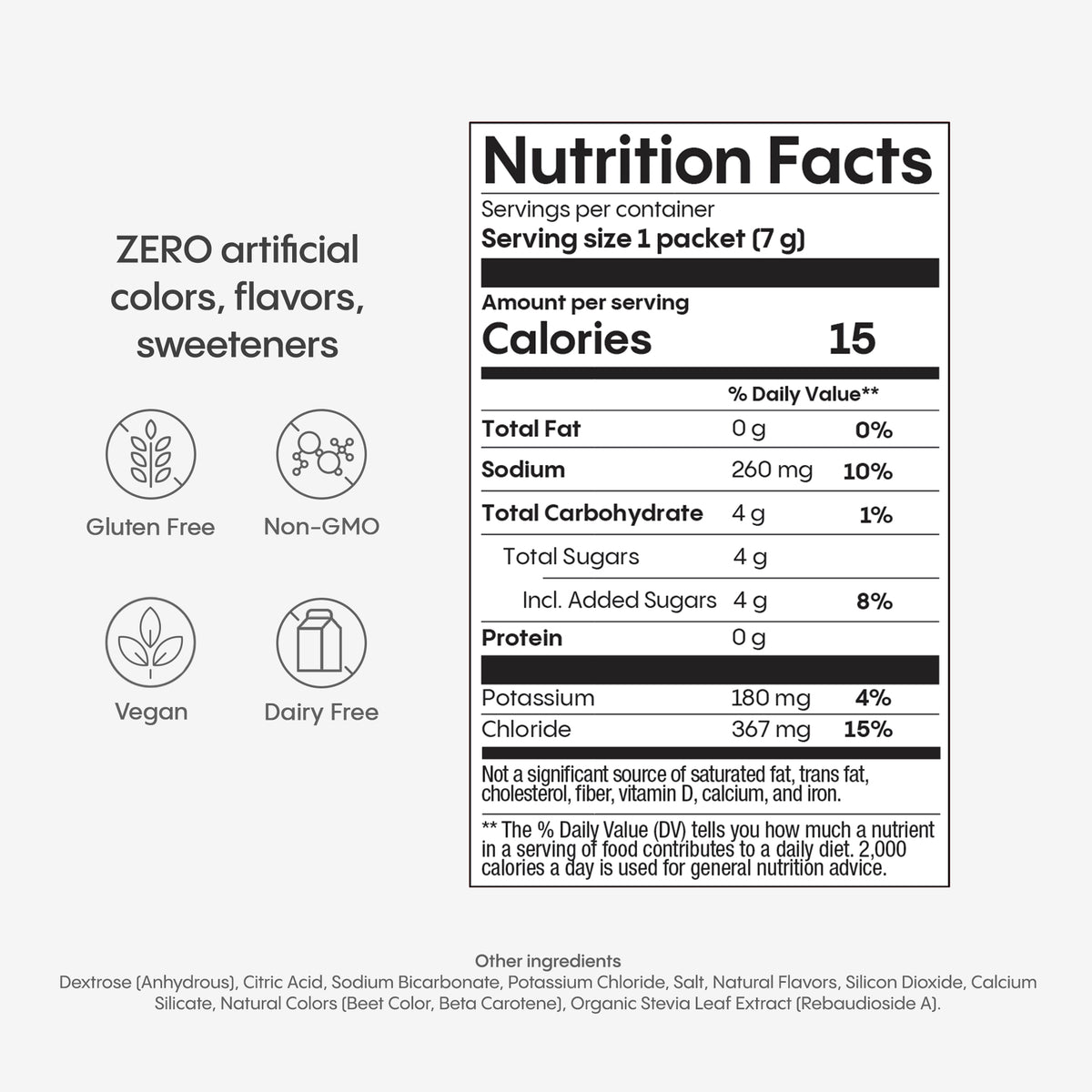 When it comes to rapid rehydration, glucose (sugar) is key. When combined with salt at the perfect ratio, glucose accelerates water and electrolyte absorption. But unlike sports drinks or electrolyte products, we use precisely the optimal amount for maximum absorption and not a gram more.