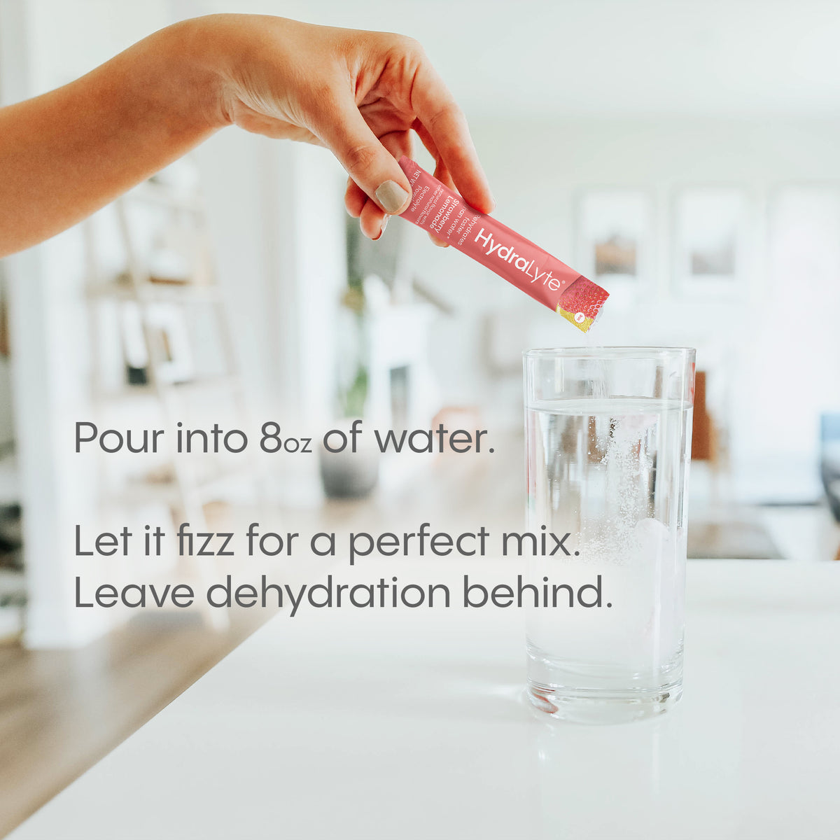 HydraLyte fizzes when added to water to help with the mix. Designed so that you have the exact same amount of electrolytes, vitamins and minerals in every sip you take. An extra stir may be needed to dissolve the powder entirely.